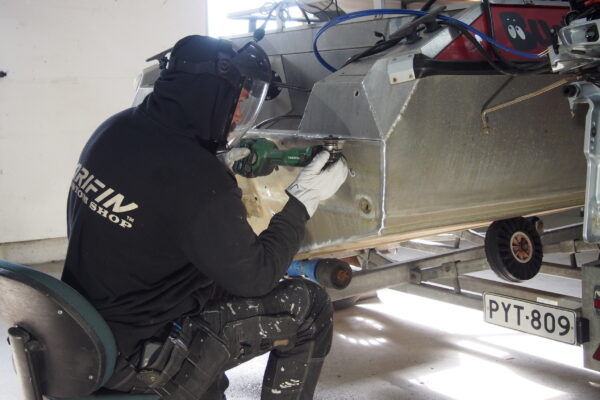 Peräpeilin korjaus pitää alumiiniveneen pinnalla