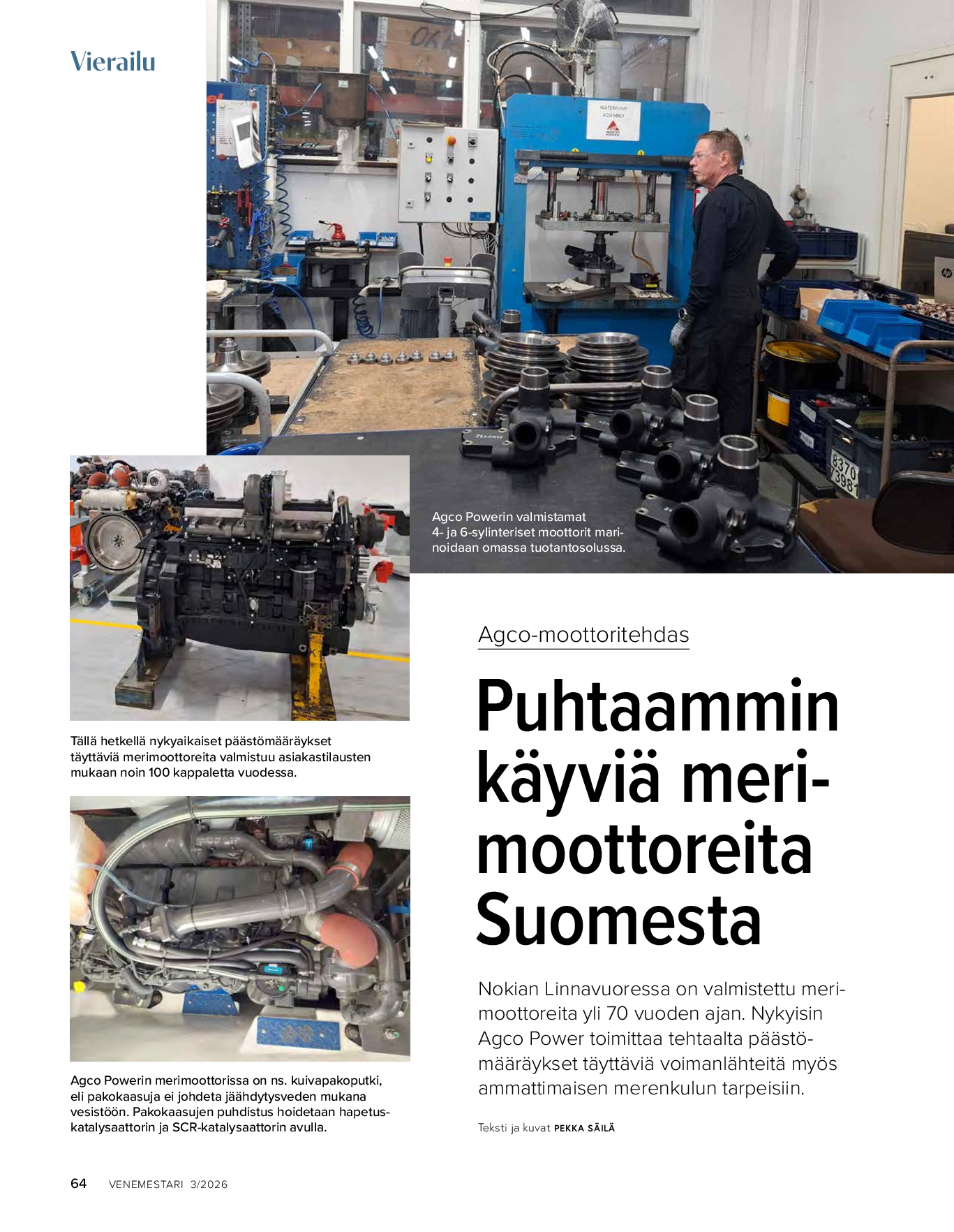 Puhtaammin käyviä merimoottoreita Suomesta: Nokian Linnavuoressa on valmistettu merimoottoreita yli 70 vuoden ajan. Nykyisin AGCO Power toimittaa tehtaalta päästömääräykset täyttäviä voimanlähteitä myös ammattimaisen merenkulun tarpeisiin.